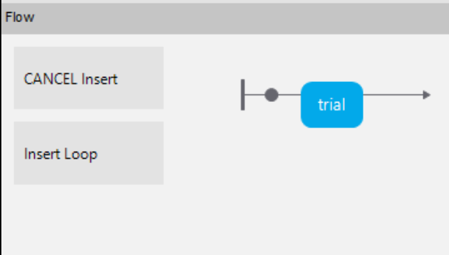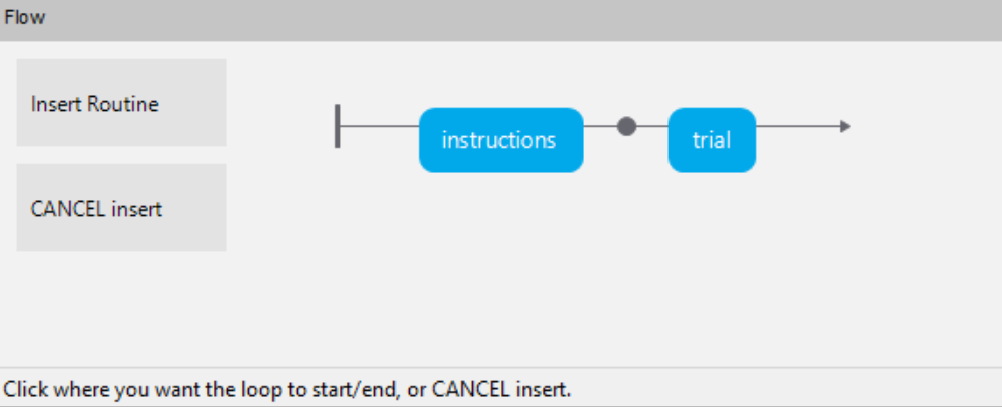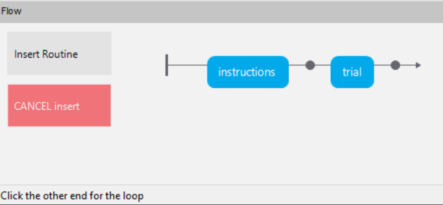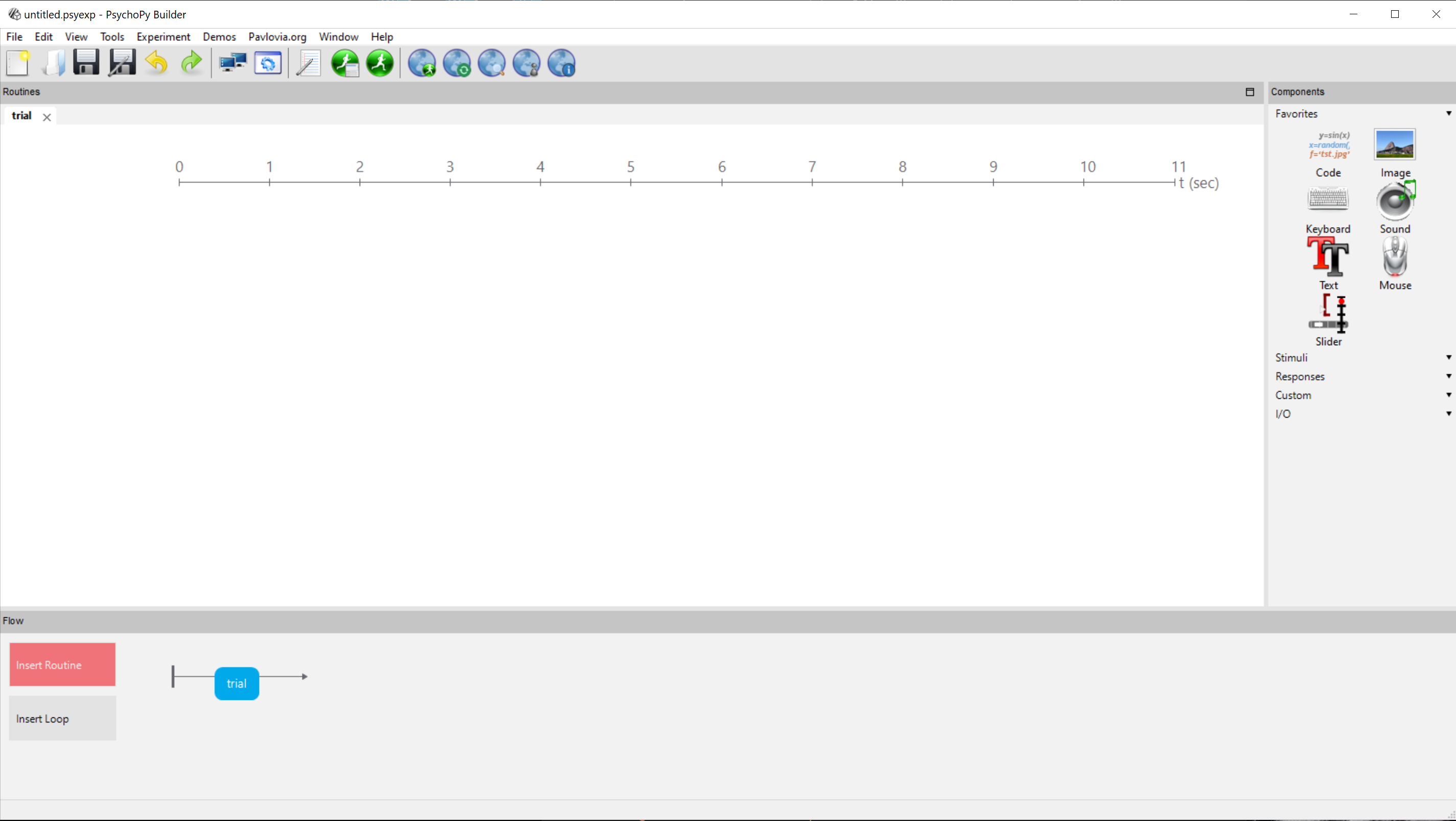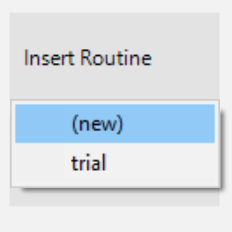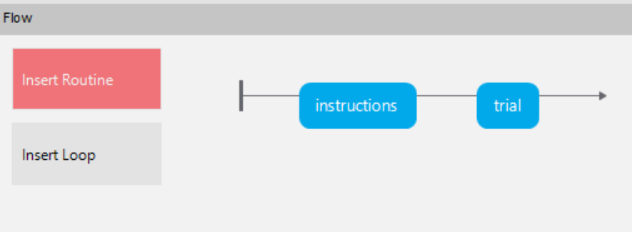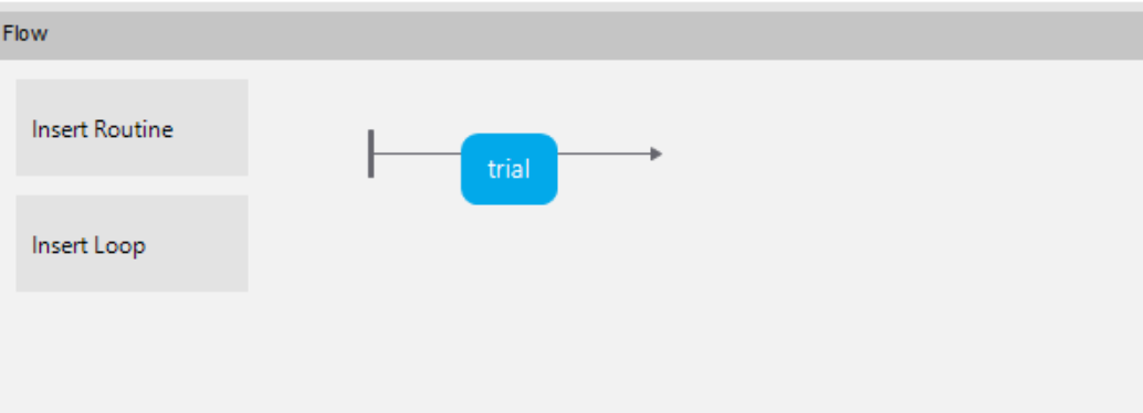Here we can see the timeline contains one Routine called ‘trial’. We also see two buttons, Insert Routine and  Insert Loop.