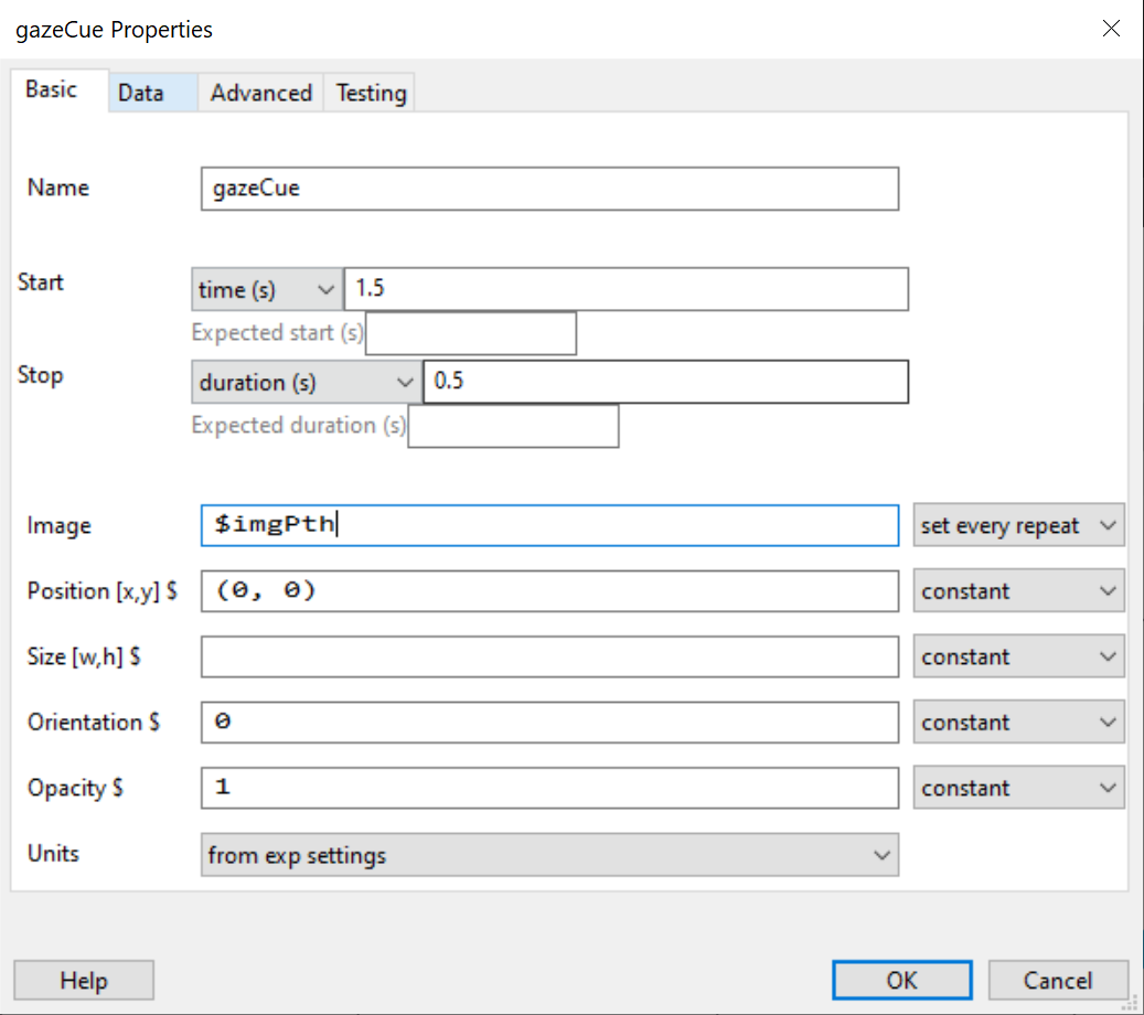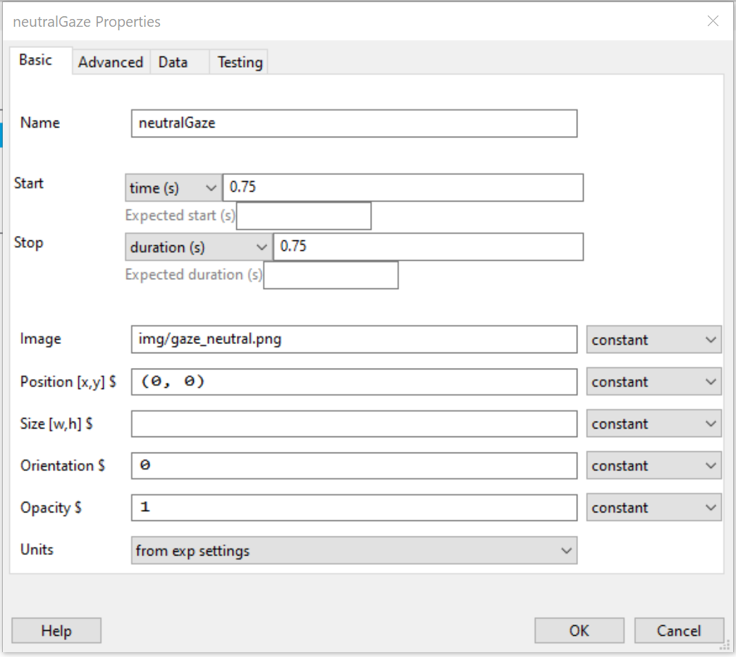 Next up we have the Neutral Gaze image, which is on the screen for another 750ms. For this we need the image object