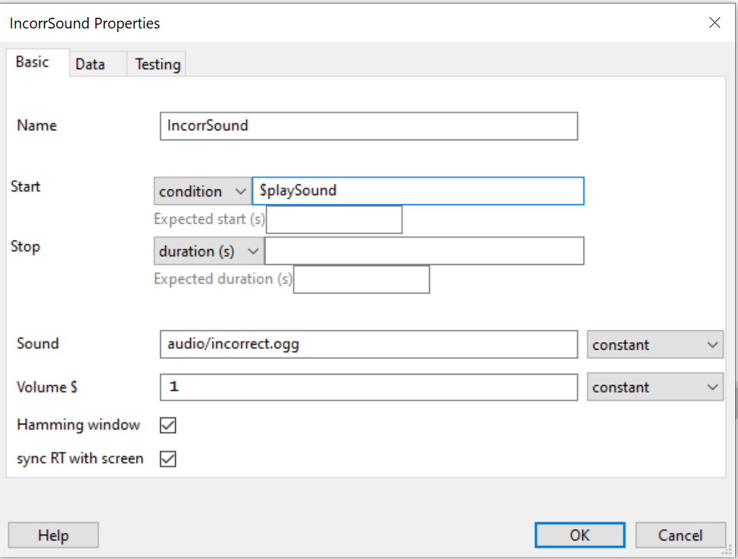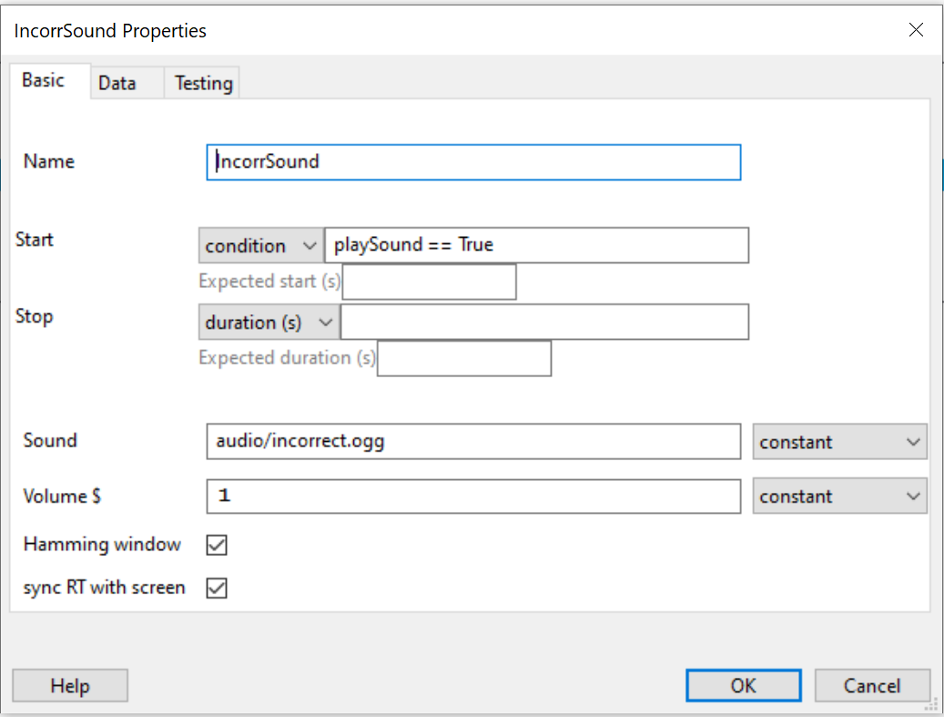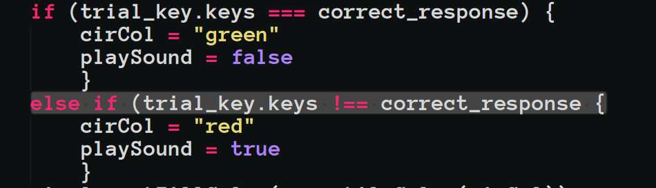 To illustrate, lets say our playSound variable is true (as in the participant was incorrect and the sound needs to play).
