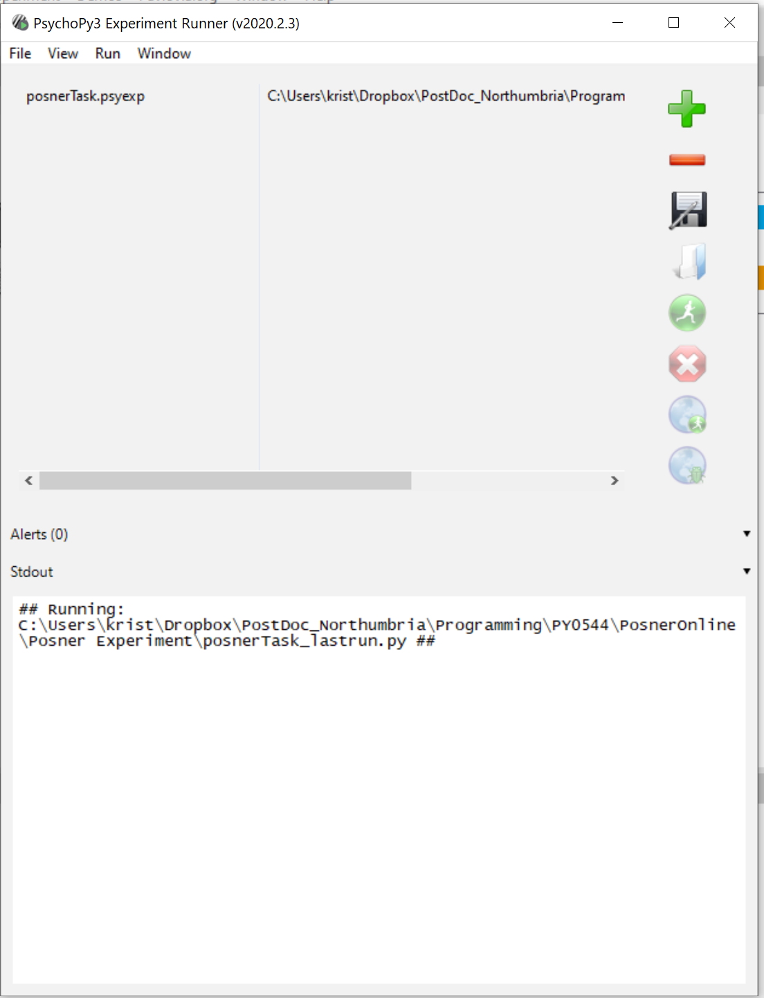 Important Note: If we run our experiment, by default it will run using the Python library on your computer, this is the ‘native’ language. We will first build this experiment to run in such a way and after we know it works, we will convert it to JavaScript.