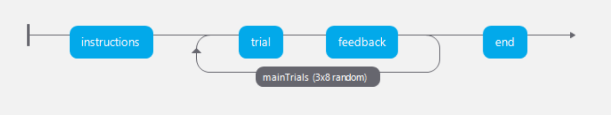 PsychoPy started life as a bunch of libraries and objects for the Python programming language to help cognitive neuroscientists create experimental procedures. It quickly grew in popularity and now has a massive user base, and most recently, the ability for experiments to be presented online in the browser using its sister library for JavaScript called PsychoJS. The good news is that due to its extensive development, a lot can be achieved without writing any computer code at all. To do this we need to use its ‘builder’ interface, shown below.