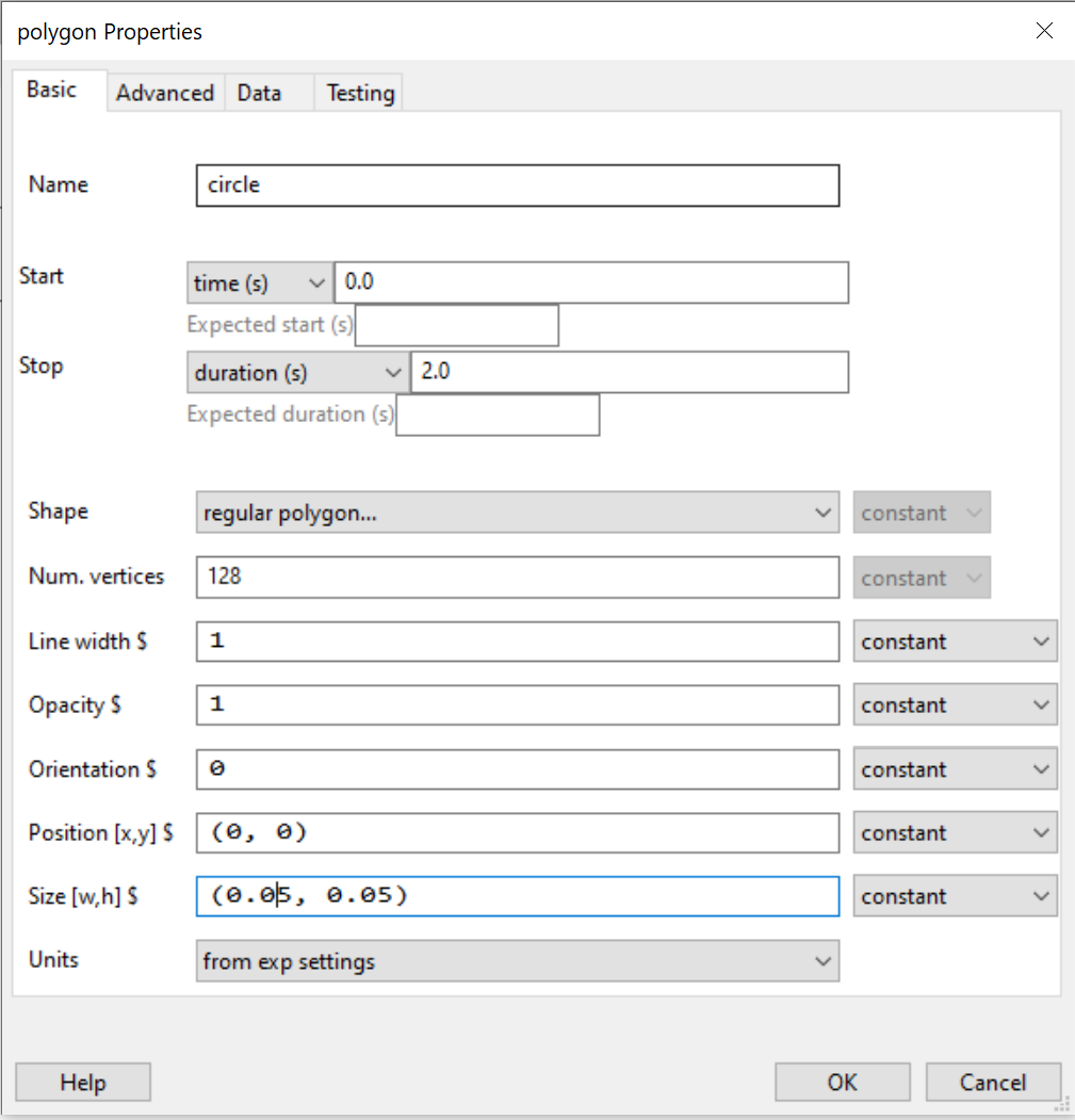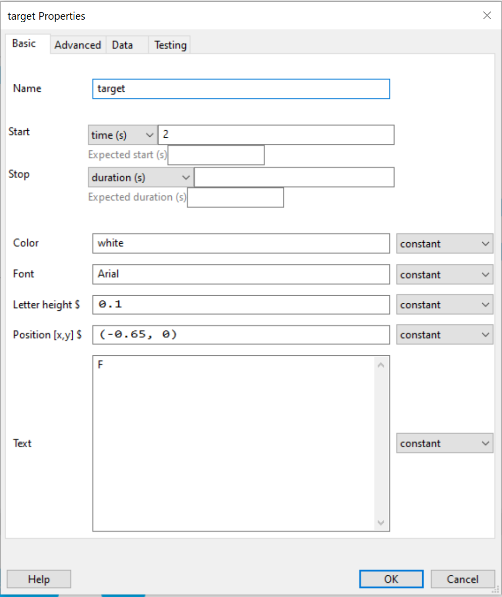 start time (s) remains at 0, but the duration needs to be set to 0.75Here is my fixation object: