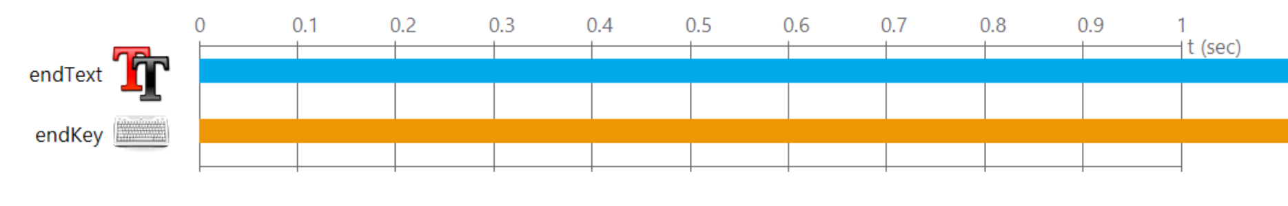 After you’ve made those changes, click OK. Your text object should appear in the timeline as below. Notice how the blue bar extends beyond the window? - This just means its displayed or ‘running’ for unlimited or undetermined amount of time. In this case we are configuring the routine so it should display our instructions until the participant presses the space bar.