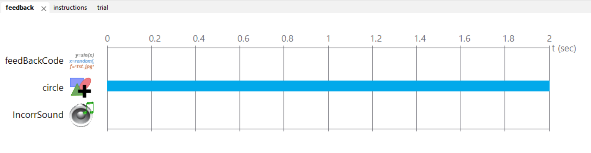 We also put some conditional code into the incorrSound component to start the sound if needed, rather than based off time. This was also Python code playSound == True. Can you guess the translation?