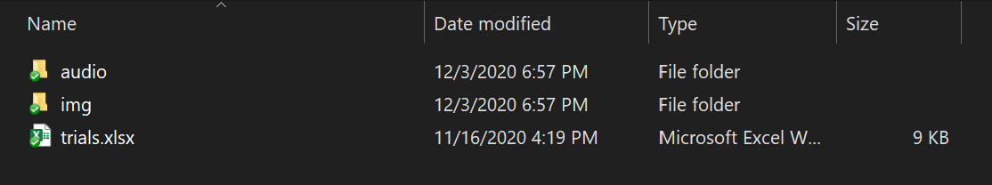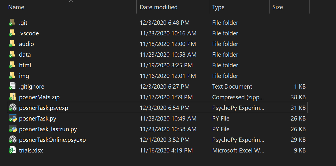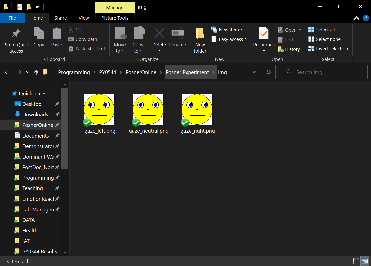 Start by creating a study folder called posner and within that folder create two more folders, one called img and one called audio.