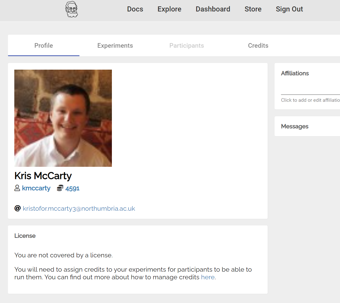 Currently Pavlovia is a paid service where each run of a study costs 1 credit (20p). You guys don’t have credits but because we aren’t running this, that doesn’t matter. We just want to see if it works and we can do this by clicking PILOTING.