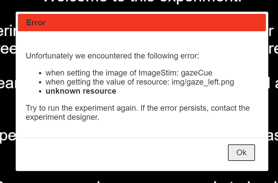 My experiment seems to start well, but when I press space to continue to my trials, I get a big red error: