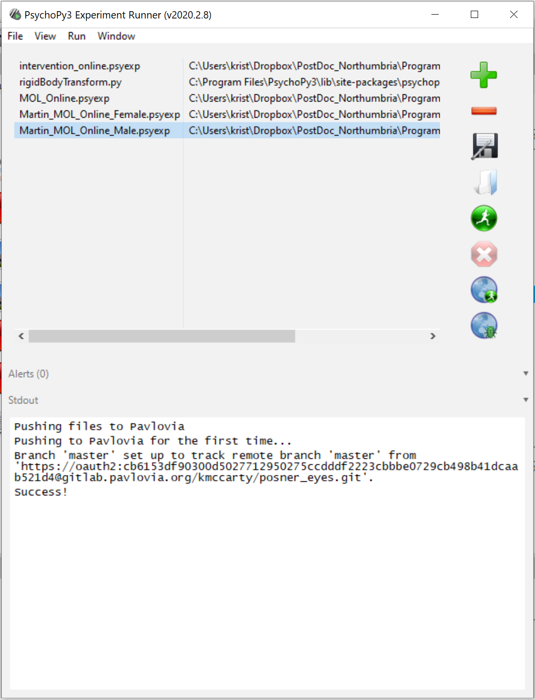 This basically says the push command and creation of the project on Pavlovia was a success!