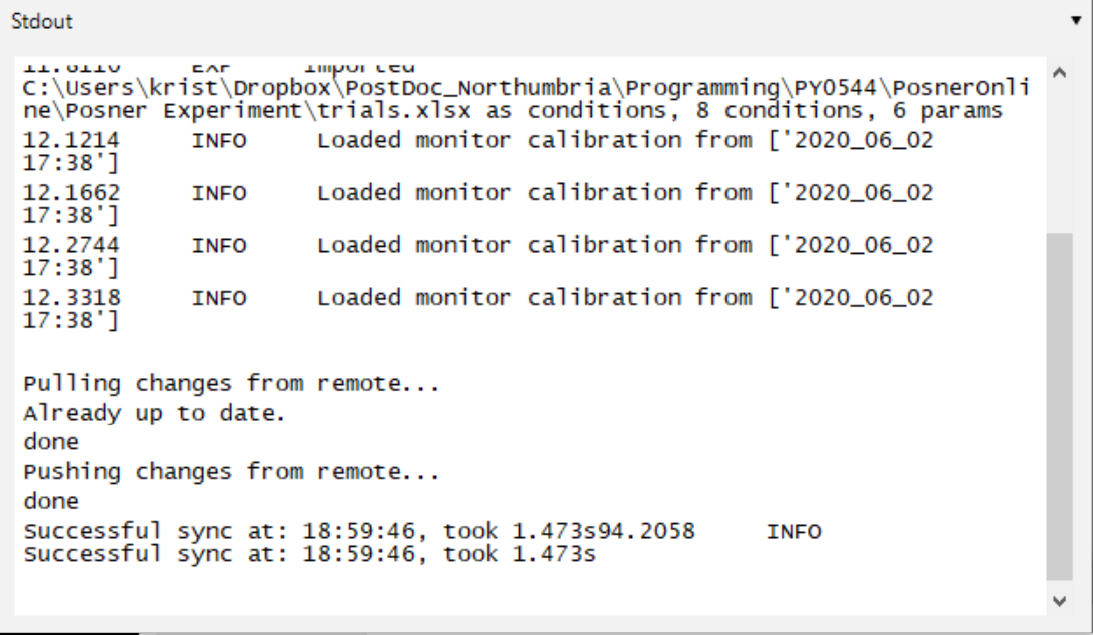 PsychoPy Builder does an “ok” job at automatically translating custom python code to JavaScript, but sadly if we tried to do this, it would throw an error as there is something it does not understand. So, we have to manually translate a few things (mainly our code components) before we sync with the server.